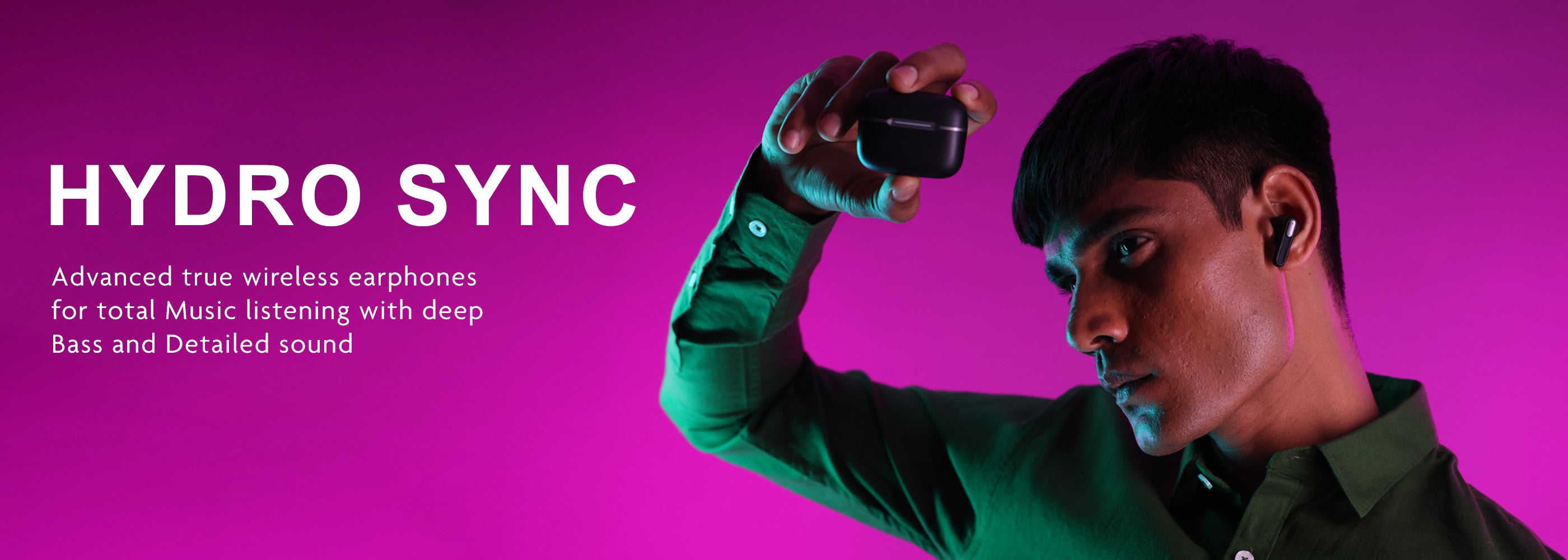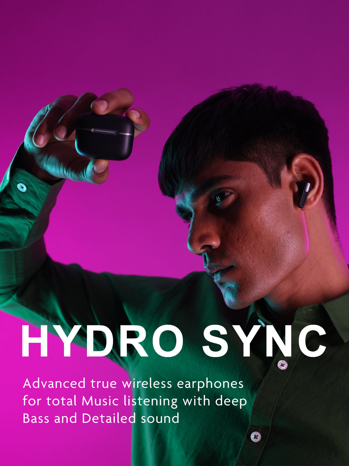 The Hydro sync is more than just a pair of earbuds; it's a fashion statement. With a sleek metallic finish and a minimalist Blue lights, these earbuds complement your style while delivering top-notch performance